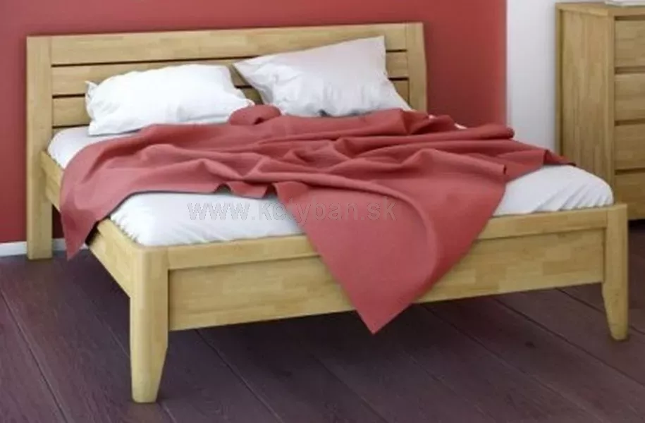 Drevená posteľ z masívu Nicolas. Jedná sa o posteľ s robustným čelom, ktoré je skosené pre príjemnejší oporu chrbta pri sedení. Čelá aj bočnice sú vyrobené zo 4 cm silného masívu.