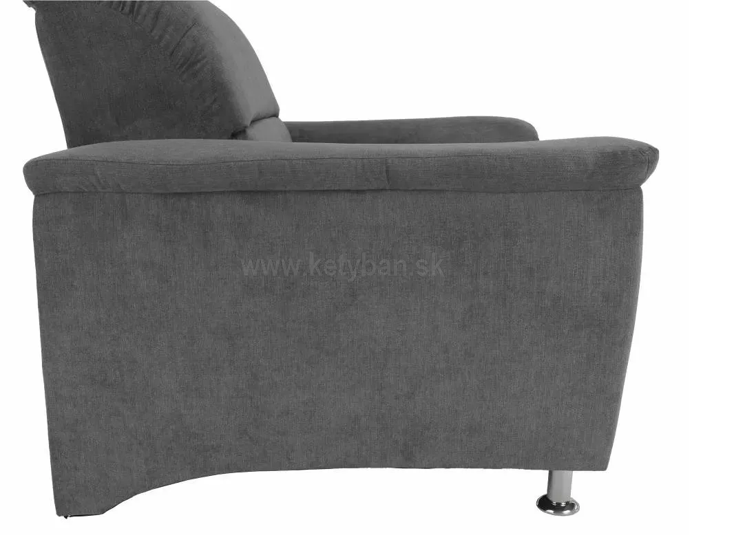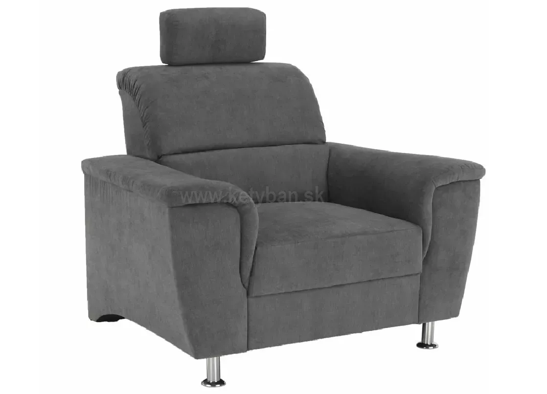 Moderné kreslo Santiago so stredne tvrdým sedením. Má polohovateľnú opierku hlavy, a je teda vhodné pre každodenné sedenie a do každého moderného obývacej izby. Nôžky sú kovové s chrómovou úpravou.