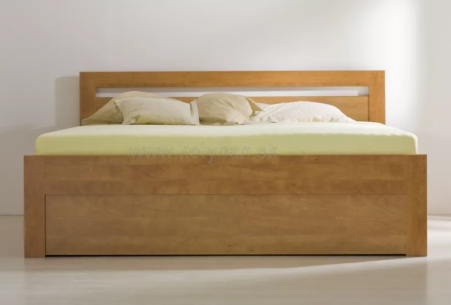 Posteľ má zvýšenú plochu na ležanie. Súčasťou postele je veľký úložný priestor a výklopný lamelový rošt. Stabilná a pevná konstrkuce je zaistená vďaka 32mm silnému materiálu s ABS hranami. Posteľ sa tiež vyznačuje vyššou odolnosťou voči mechanickému poškodeniu.