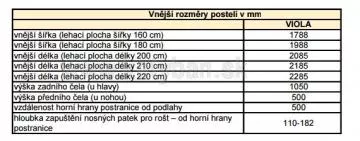Masívna posteľ Viola s členitým čelom v sebe spája praktické využitie s dokonale prepracovanými líniami. Jej masívny vzhľad je určený najmä do priestrannejších spální. Prierezy v čele postele vytvára rovné línie, ktoré sa dômyselne dopĺňajú s jemne zaoblenými hranami po celej konštrukcii postele.