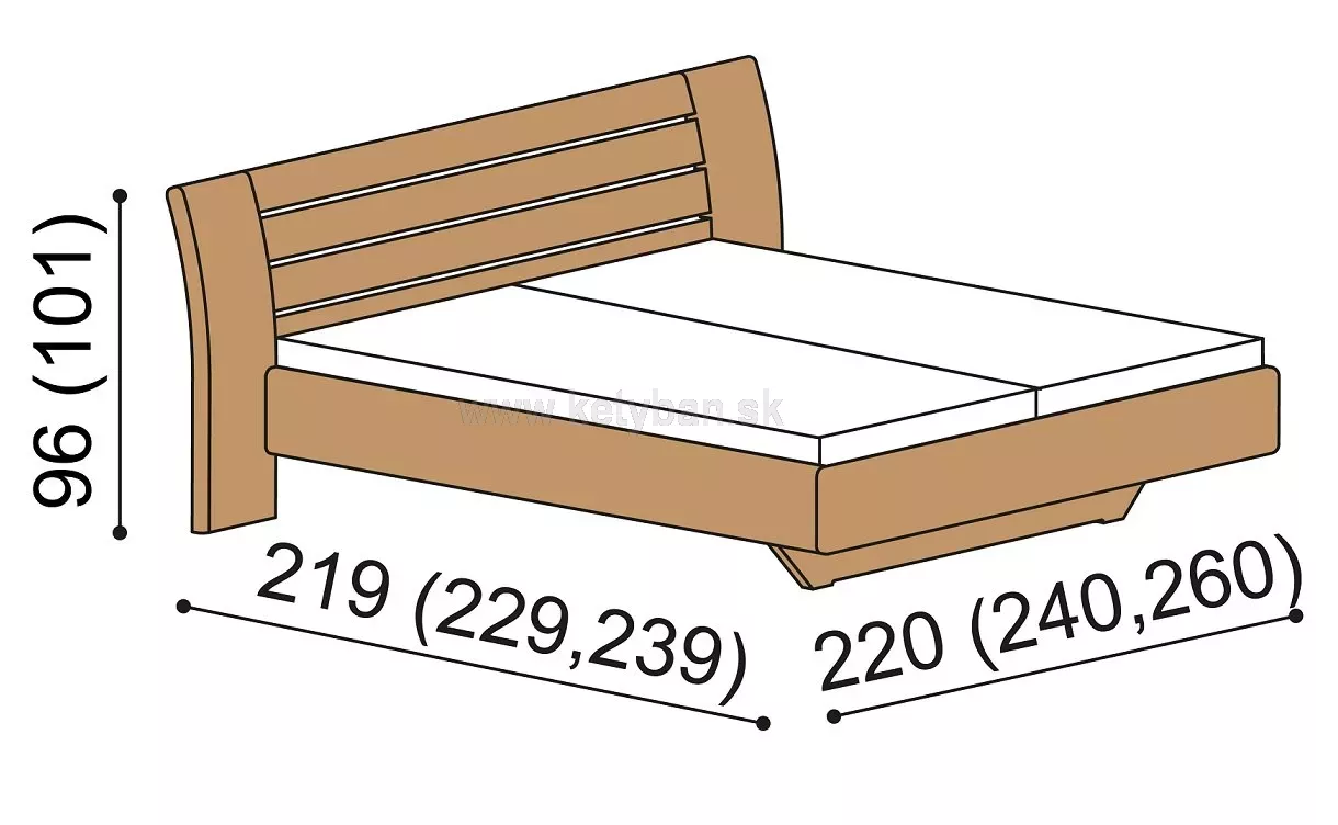 Dvojlôžko je vyrobené v kombinácii 25 a 40 mm silného dubového masívu.