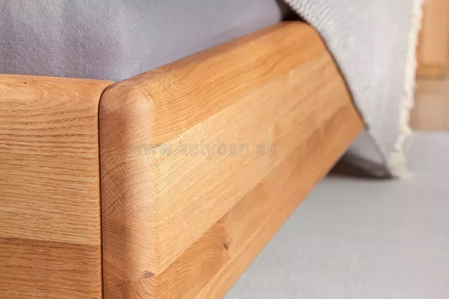Posteľ ponúka dokonalé pohodlie vďaka zaobleniu všetkých hrán a precíznemu ručnému brúsenie. Dizajn je premyslený do posledného detailu. Nemusíte sa báť zakopnutia o nohu postele. Tento problém dizajnér vyriešil pomocou ustoupeného sokla.