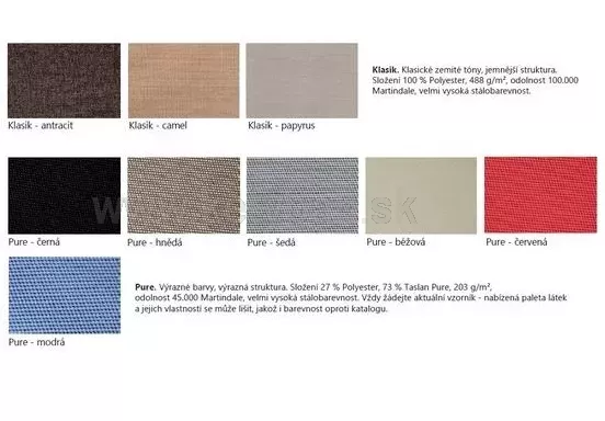 Posteľ ponúkame v niekoľkých látkach s dlhou životnosťou a ľahkou údržbou.
