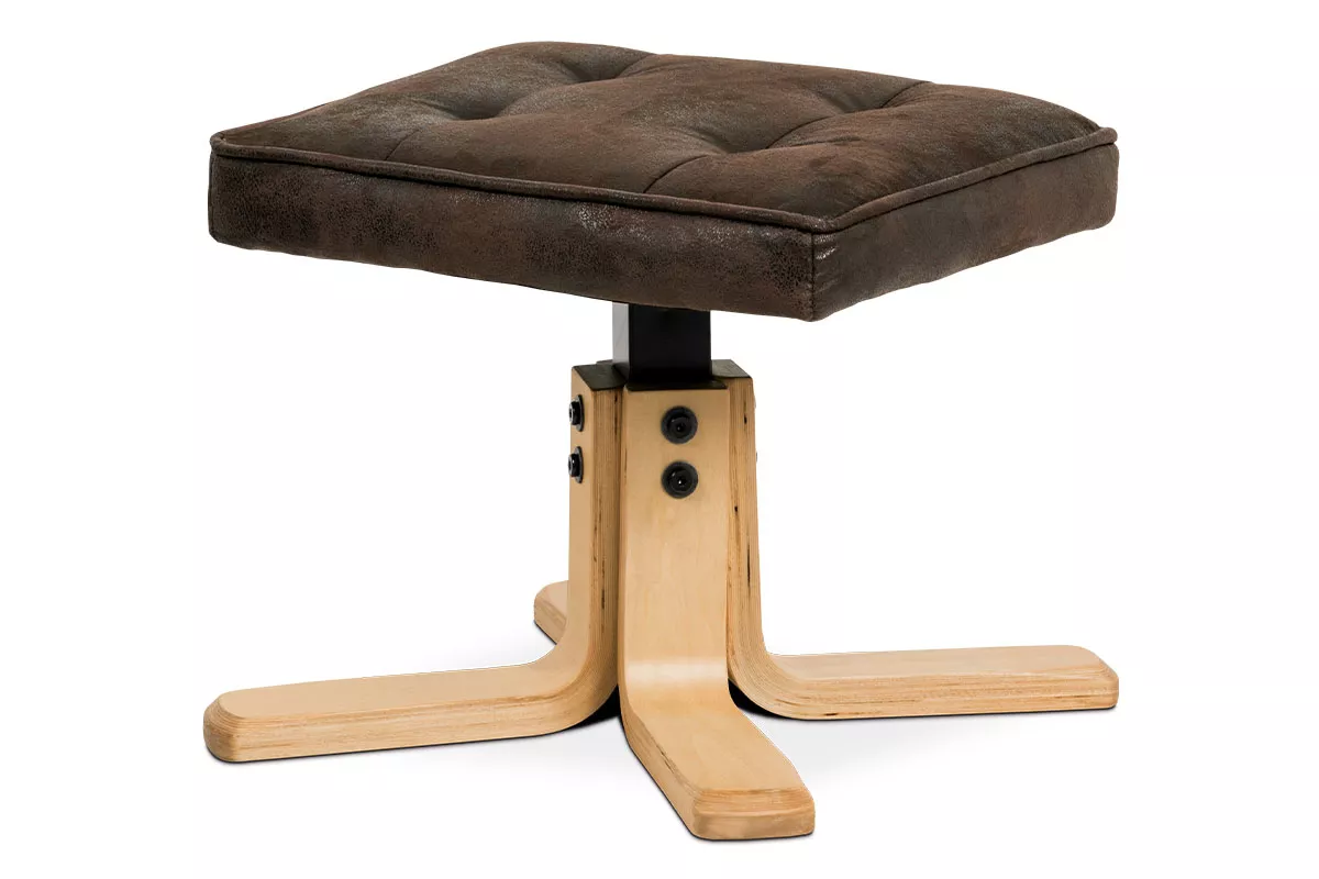 Skvelým doplnkom kresla je aj taburet so štvorcovým čalúneným sedákom čalúneným niektorú zo tri látok imitujúce brúsenú kožu a so štýlovým prešitím, ktorý je na podnoži z masívneho dreva v prírodnom odtieni.