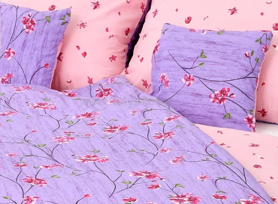 Jemné kvety, kombinácia ružovej a fialovej farby volajú po romantickej duši. Obojstranné obliečky zaujme mladú dievčinu, matku i babičku.