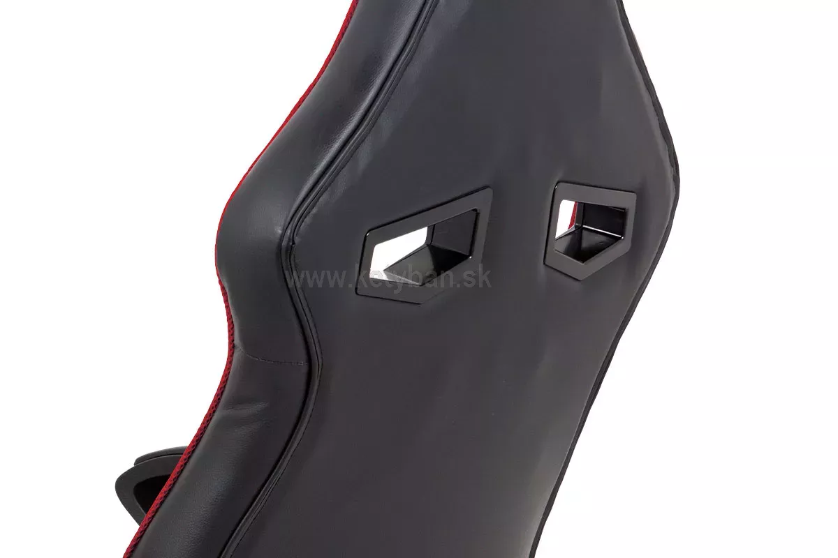 Herný dizajn dodáva stoličku šmrnc. Operadlo disponuje nielen pohodlným podhlavníkom, ale tiež dvoma plastovými otvormi, ktoré pridávajú na štýlovom vzhľade stoličky, hernému zážitku a zároveň sa vďaka nim dá s stoličiek lepšie manipulovať.