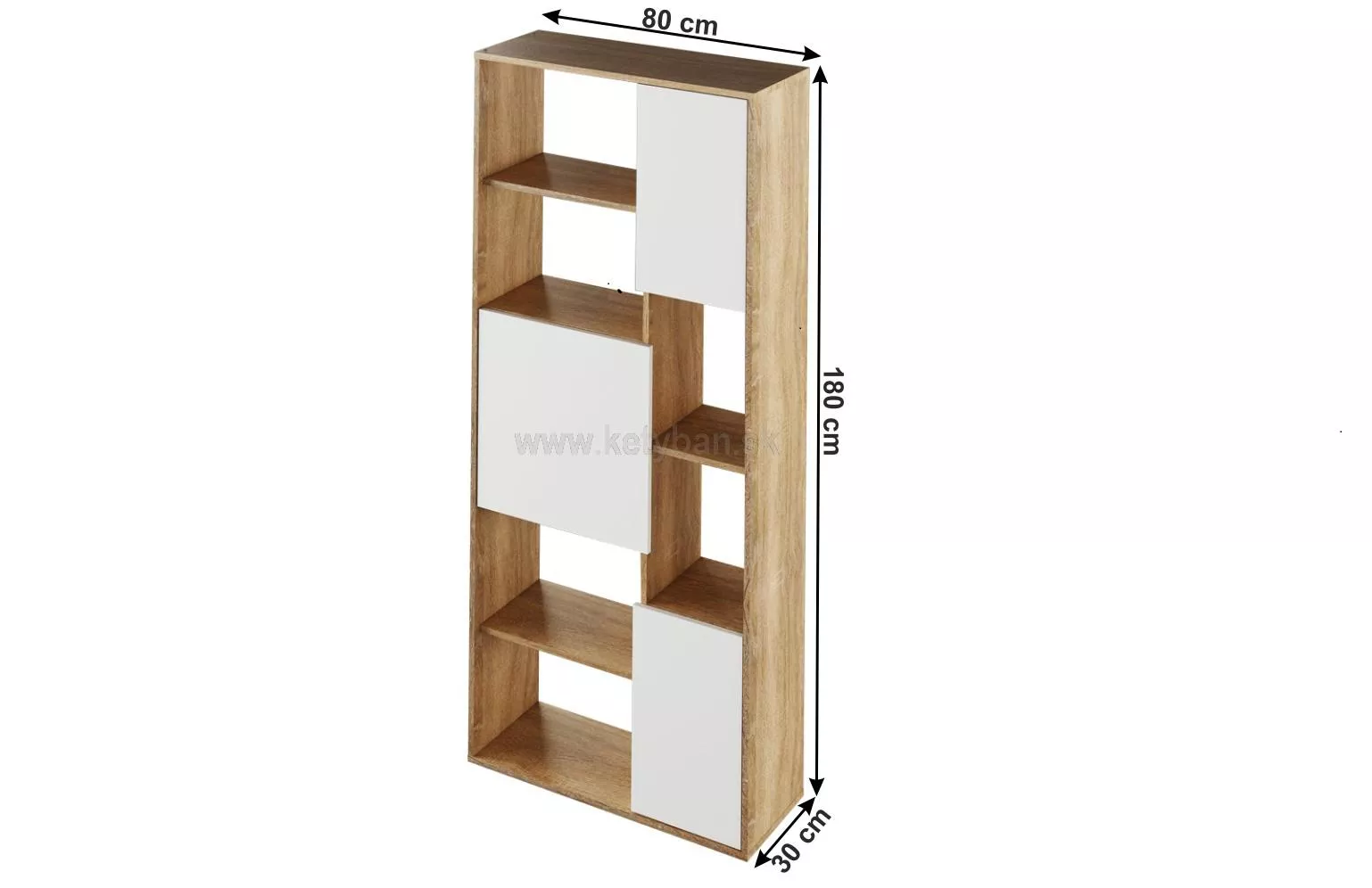 Regál Ulim je k dostaniu v dvoch variantoch v prevedení dub sonoma a biele dvierka, ale aj v prevedení betónových dvierok s bielou variantom regálu.