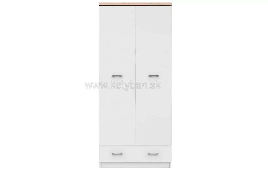 Skriňa je vyrobená z kvalitnej laminovanej DTD o sile 16mm v bielom prevedení. Horná doska je v prevedení dub sonoma o sile až 32mm, čím vytvára jedinečný dizajn. Chrómové úchytky zaisťujú jednoduchú manipuláciu. Skrine nájdete svoje nenahraditeľné miesto v predsieni, spálňu i detskej izbe alebo obývacej izby.