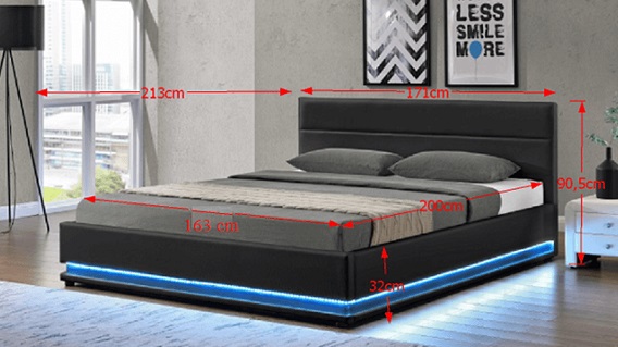 LED osvetlenie je nielen v noci alebo navečer praktické, ale opticky aj posteľ zdôrazňuje. Čelo postele je zdôraznené pozdĺžnym prešitím.