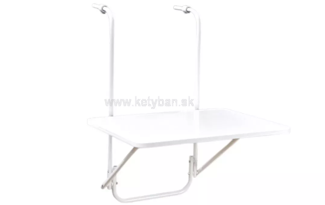 Skladací Balkónový stolík, ktorý ľahko zavesíte a môžete si vychutnať napr. obľúbený nápoj. Doska je potiahnutá odolným melamínom. Rohy stola sú vystužené plastom.